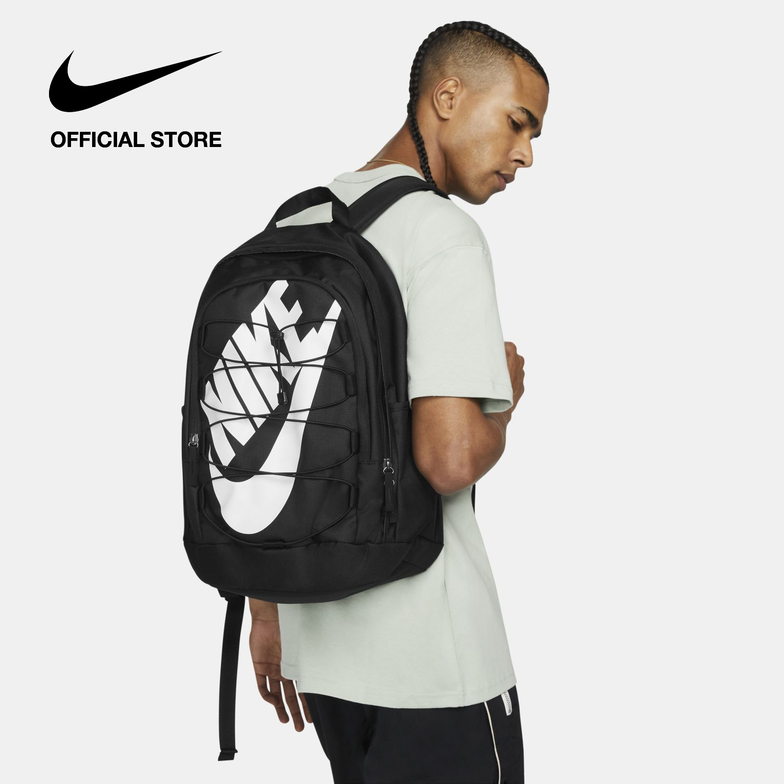 The Nike Hayward Backpack is a new twist on an old favorite with plenty of room for your gear. The durable design has webbing at the front to hold a jacket and side pockets for a water bottle.