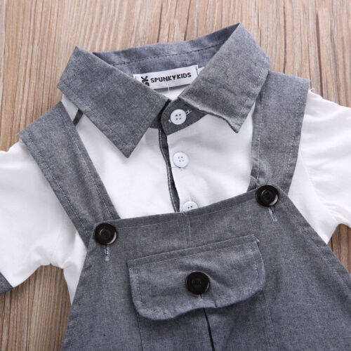 Newborn Infant Baby Boys Gentleman Clothes Short Sleeve T-shirt Shirt Tops Bib Pants Shorts Outfits Set